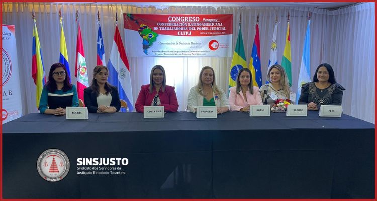 A presidente do SINSJUSTO, Maria das Dores, juntamente com Roberto Eudes Fontenelle, do Sindjustiça Ceará, está representando a Federação Nacional dos Trabalhadores do Judiciário nos Estados (Fenajud) no Congresso Anual da Confederação Latino-Americana de Trabalhadores do Poder Judiciário (CLTPJ), que acontece de 12 a 14 de novembro, em Assunção, capital do Paraguai.